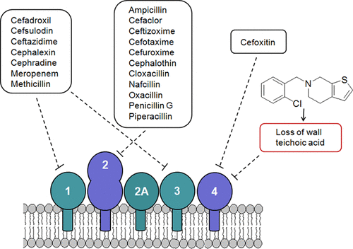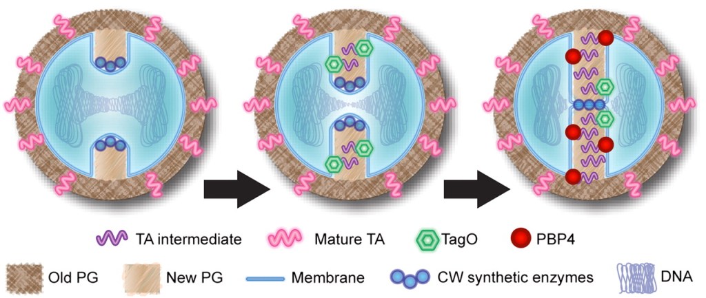 Inhibition of WTA synthesis blocks the cooperative action of pbps and sensitizes MRSA to beta-lactams, Farha MA, Leung A, Sewell EW, D’Elia MA, Allison SE, Ejim L, Pereira PM , Pinho MG, Wright GD, Brown ED, ACS Chem Biol (2012).
