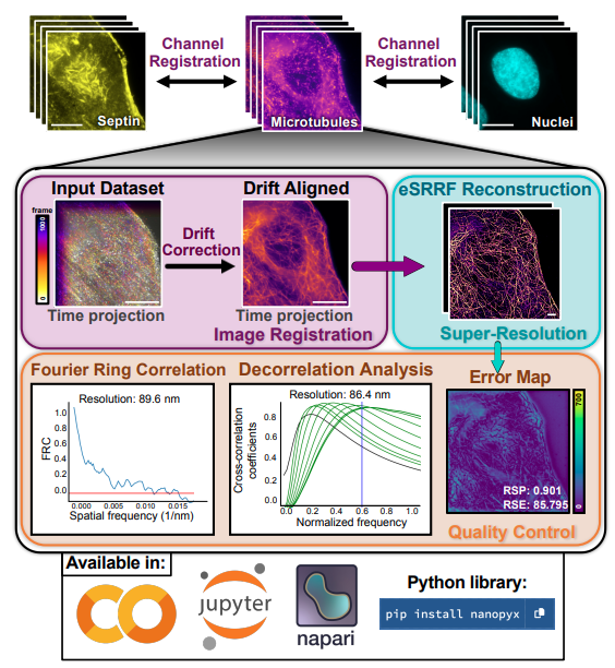 What is this about? NanoPyx is a cutting-edge bioimage analysis framework that accelerates the processing of complex microscopy datasets. Its adaptive machine learning system, the Liquid Engine, optimizes performance by dynamically generating and benchmarking multiple code variations for each task, achieving over 10-fold speed improvements. NanoPyx offers accessibility through a Python library, Jupyter notebooks, and a napari plugin, catering to users of all coding proficiency levels.